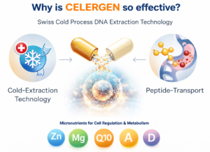All Celergen products are tested according to the strictest pharmaceutical and food standards and are manufactured in Switzerland. International clinical studies confirm Celergen’s effective support of cells, skin and general well-being.